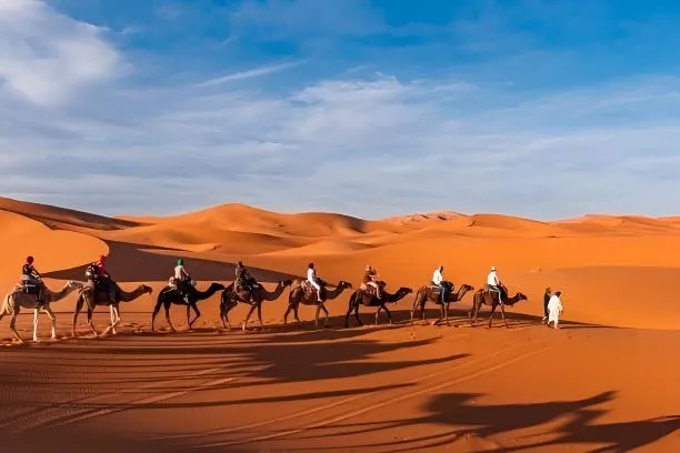 Descubre el Sahara y el sur de Marruecos en este tour de 5 días diseñado especialmente para estudiantes. Comienza con 2 noches en Marrakech, explorando sus zocos, plazas y cultura única, antes de continuar hacia el desierto. Disfruta de una noche en un campamento de lujo en el desierto de Merzouga, paseo en camello al atardecer entre las dunas, y visitas a pueblos bereberes llenos de historia y tradición.
